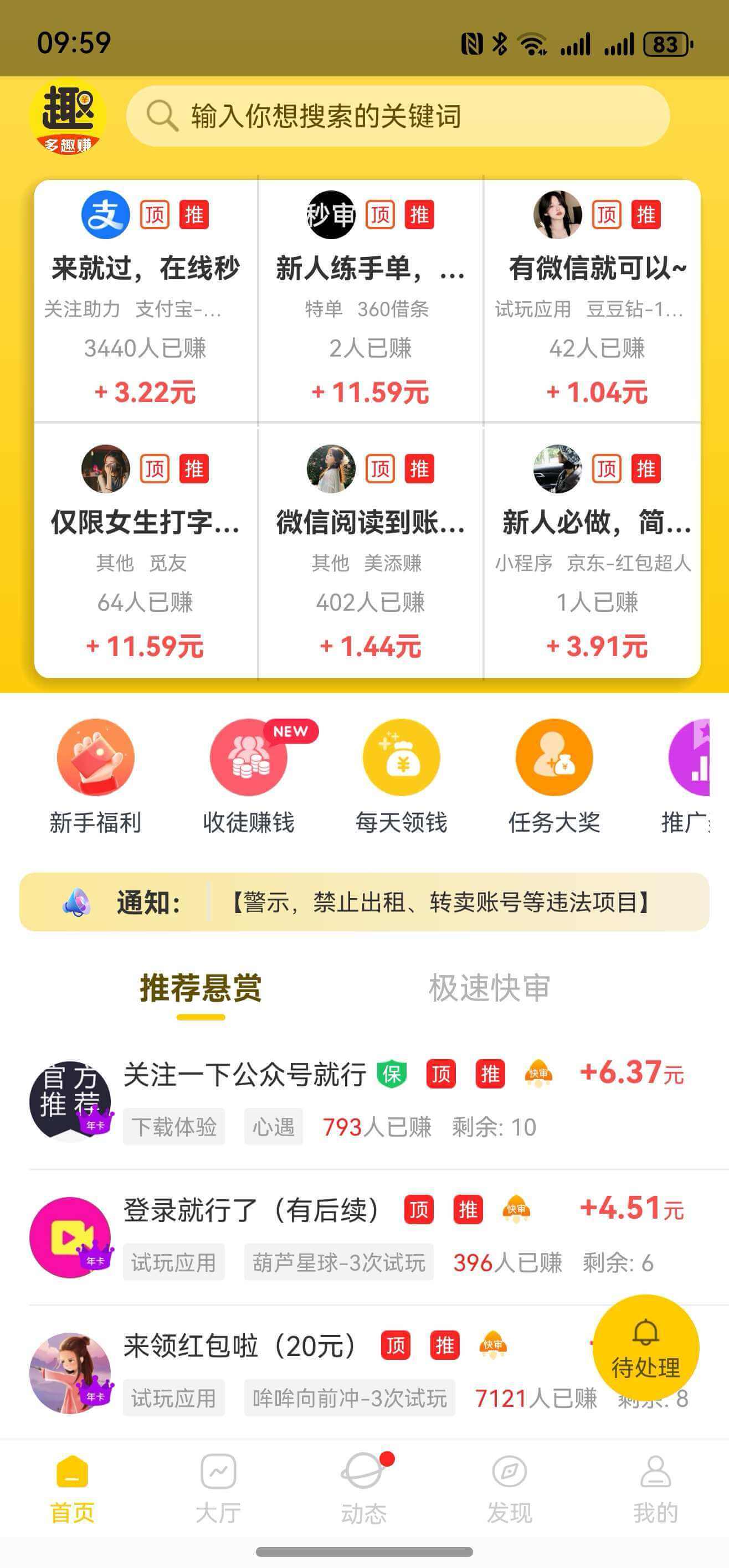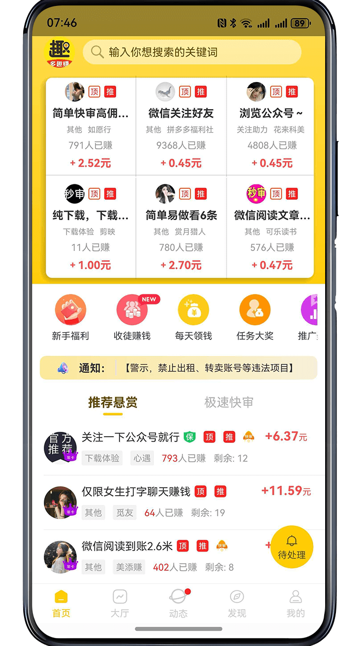 多趣赚提供强大的任务发布系统与一站式数据面板,助您高效管理与实时追踪。