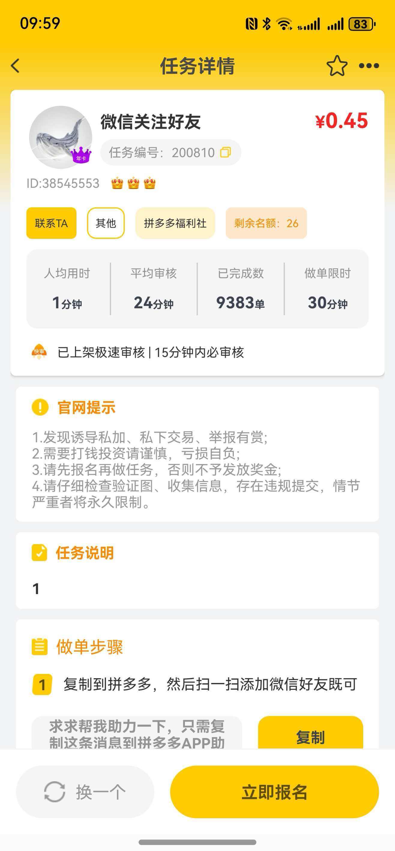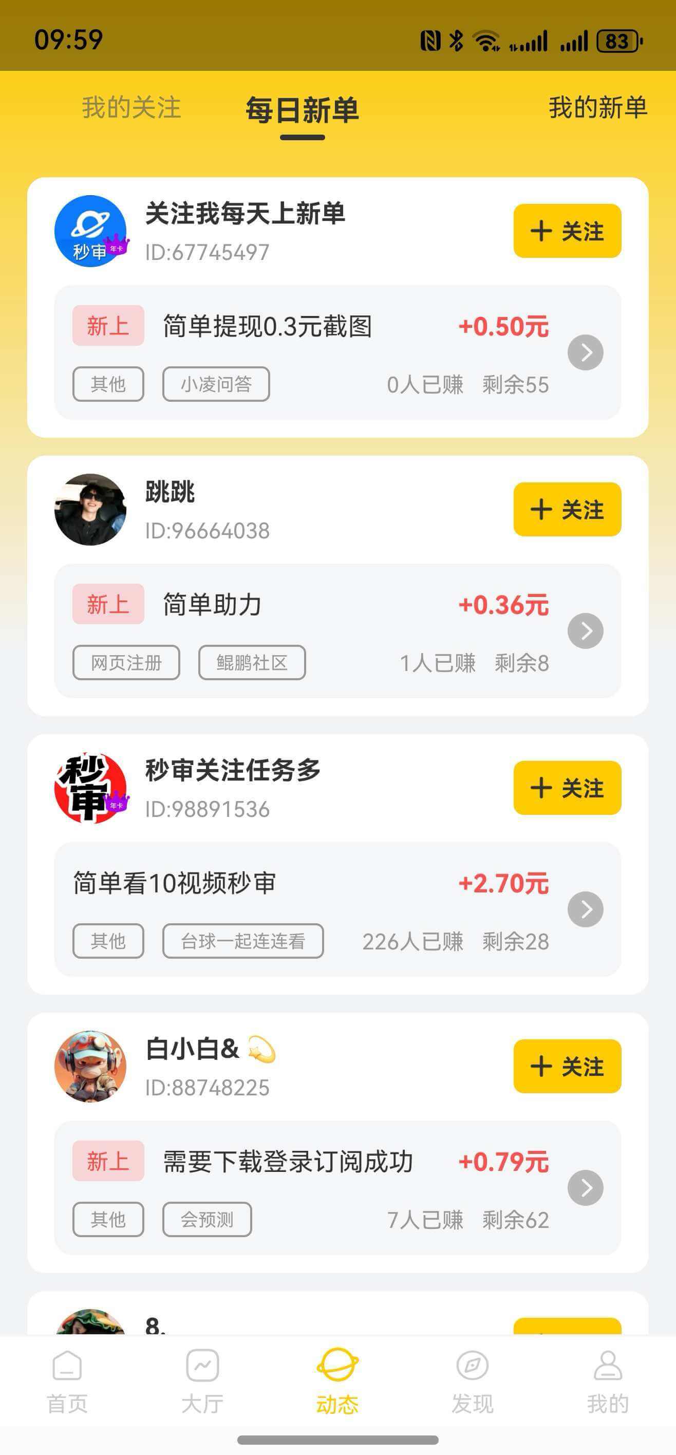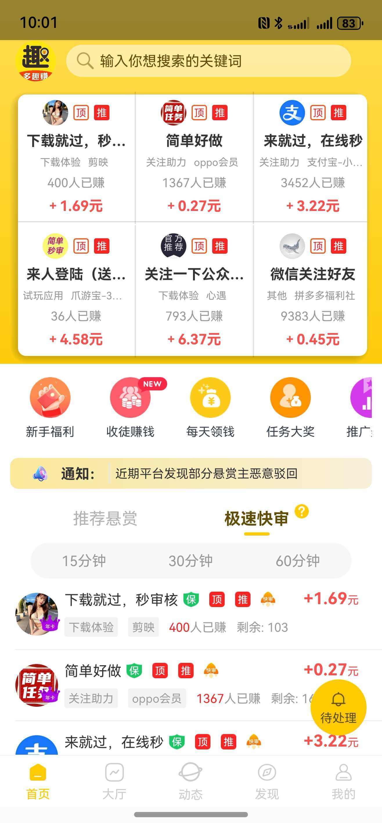 平台提供丰富多样的任务类型,如调查问卷、数据采集、转发、点赞、看视频等,用户可依据自身兴趣与能力灵活选择。完成任务即可获得相应奖励,且审核极速,最快1分钟即可到账。